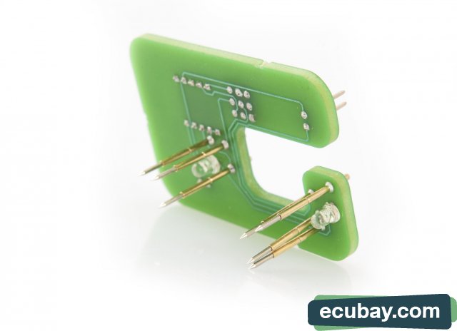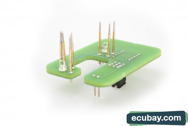 - supports Fgtech and KTAG programmer with switching mode with jumpers - fits to classic BDM frame (this one is 6cm wide), if you need non standard 4cm wide adapter for non standard BDM frame, please click HERE - supports stable and precise connection - with 2.5mm PCB there is no bending - supports stable and reliable connection with precise golden pogopins - very good impact resistance and nice handling with smooth PCB rounded edges - usefull marking on the PCB - ground and +12V pins are marked for led lights - external 12 V power supply can be used for LEDs - 4 LEDs for very good luminosity - very important cut out edges very close around the pinouts for great view while connecting to the ECU - clear view of the ECU pads simplifies positioning of the adapter- adapter dimension: 40mm x 60mm x 2.5mm